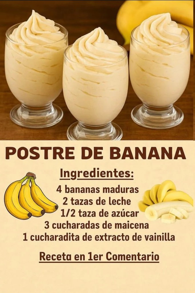 ¡Siiii ! Prepárate para hacer uno de los postres más fáciles, cremosos y sabrositos del planeta: el delicioso POSTRE CREMOSO DE BANANA . ¡Ideal para consentirte sin complicarte! Esta es la receta perfecta para cuando las bananas ya te andan gritando desde el frutero: “¡úsame antes de que me pongan en batido!”